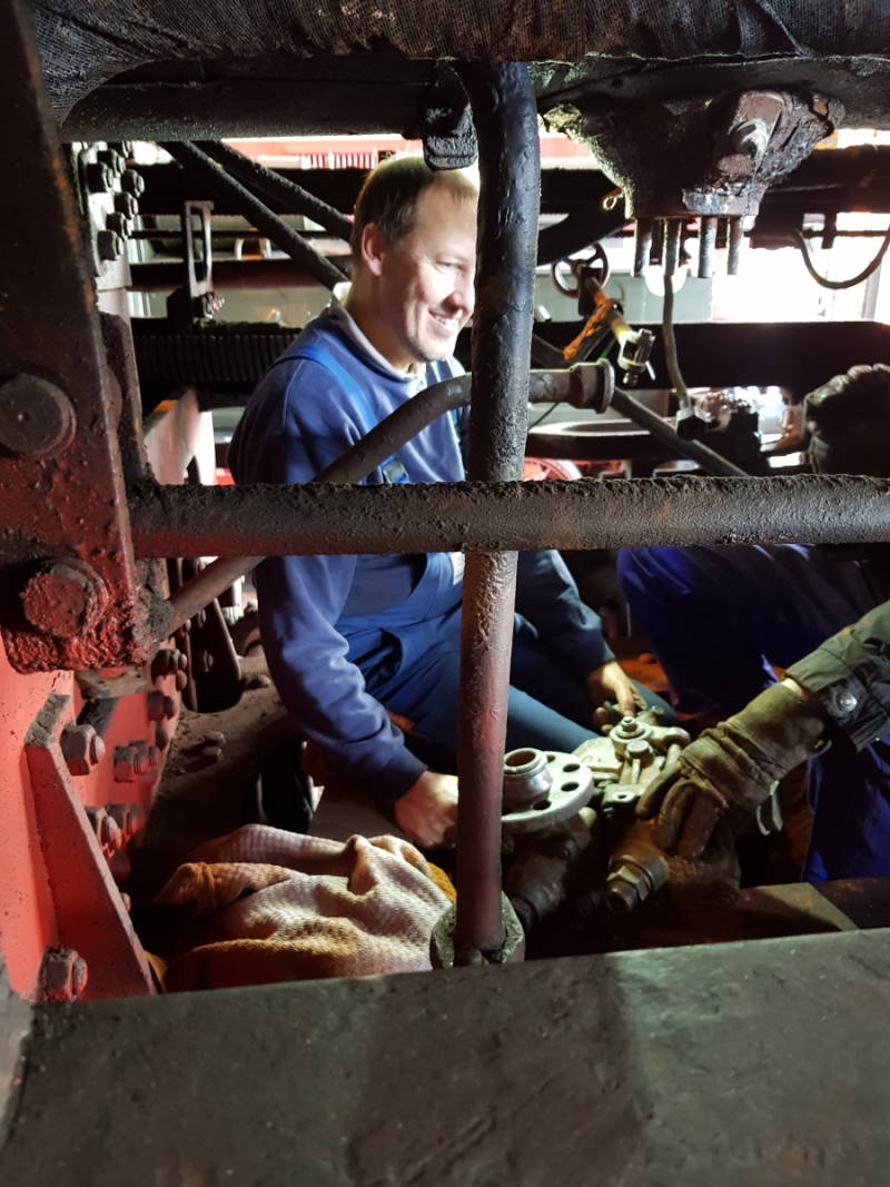 Work is also progressing on our steam locomotive 50 3570, which is getting a boiler inspection. In the meantime, the sliders have been refurbished and could be installed yesterday.