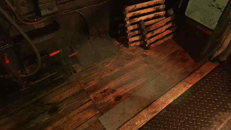The cleaned floor on the driver's cab: