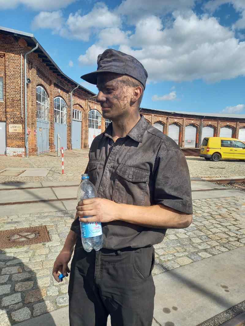 However, the action did not leave the colleague completely unscathed and we are happy for him that there are functioning showers in the locomotive shed: