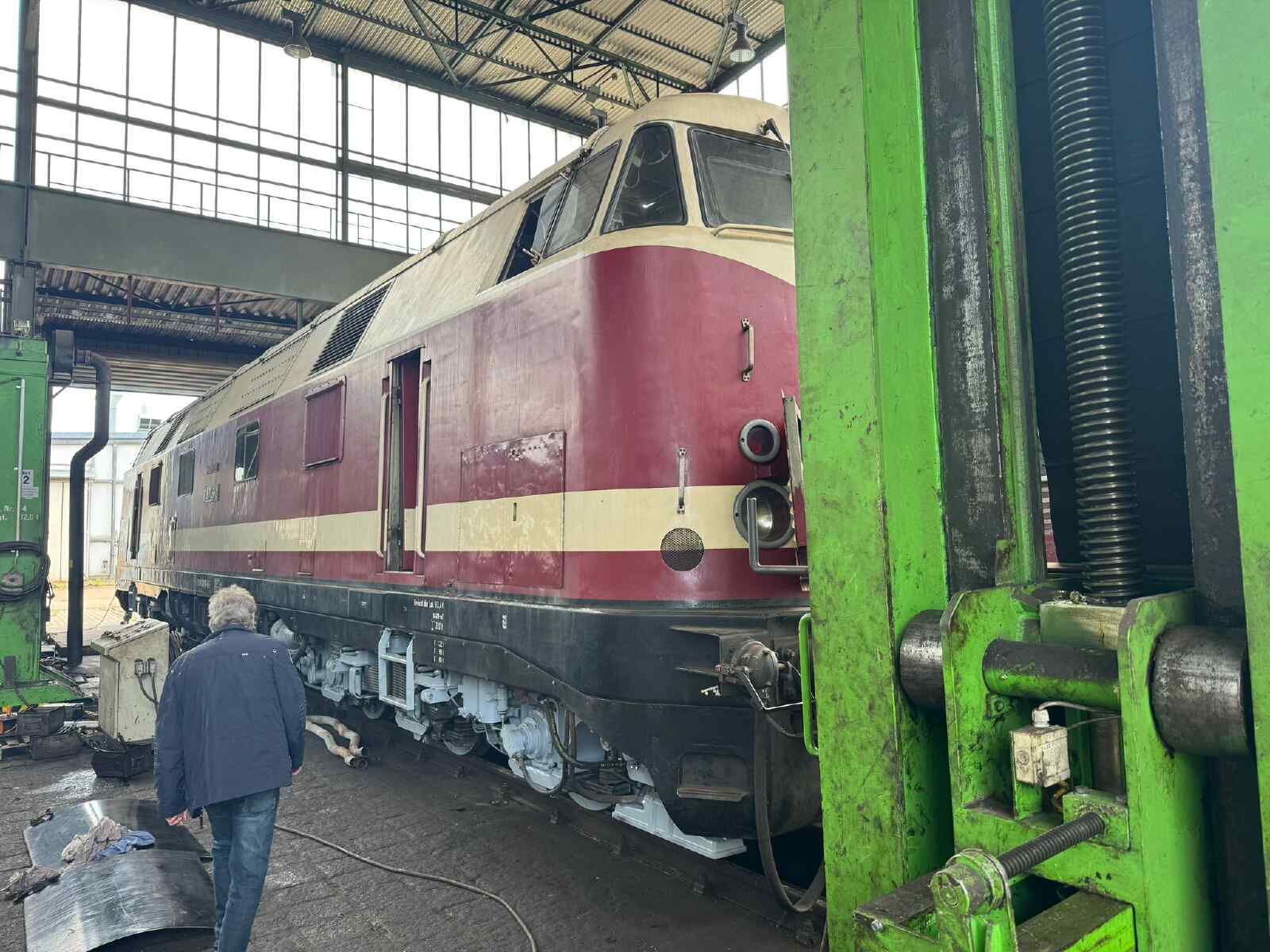 https://hamburg-berlin.deutschebahn.com/home.html. Now let's move on to the activities in the museum and its vehicles. During the last event, some visitors asked where our diesel locomotive 118 748 was. The answer is that it is still in a contractor's workshop where a general inspection is being carried out. The relevant work is almost complete, the locomotive is back on its own wheels and the engines are running. Remaining work is currently being carried out, such as the installation of a modern radio system. This is a prerequisite for using the locomotive on public tracks.