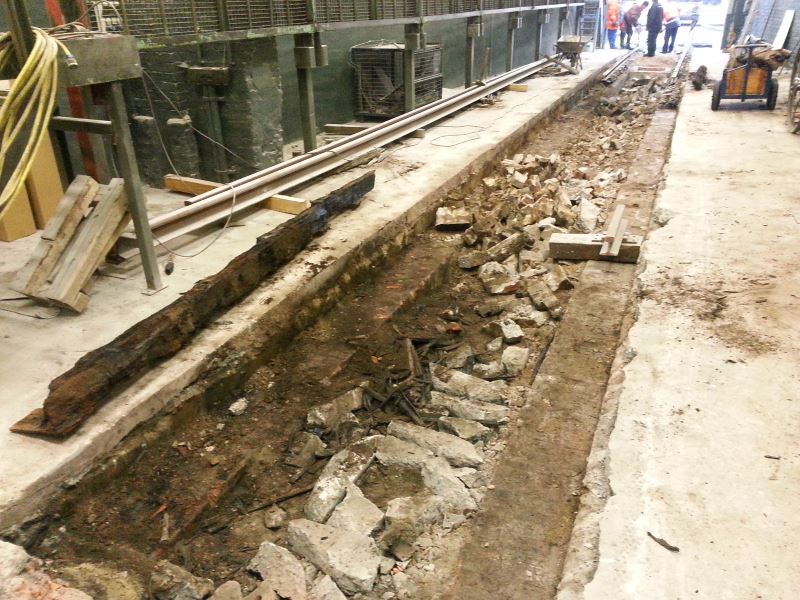 Work on No. 1 road in our locoshed continues. Today's task was to remove the longitudinal sleepers which were installed more than a century ago to support the rails on No.1 road. Over the years, they have become absolutely rotten in places although they still made strenuous efforts to resist their removal, since they were securely bolted to the brick foundations (this can be seen in the picture below to the left and right in the pit). The following picture shows all that remains of one of the longitudinal sleepers.