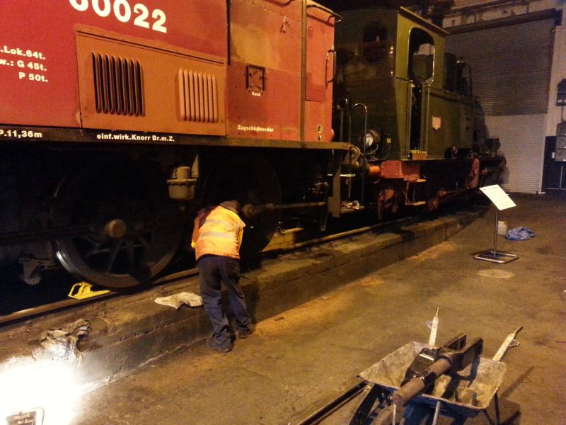Further work has also been carried out on the vehicles. The braking system on diesel loco No. 60022 is having a thorough overhaul involving removing all system components, cleaning them, inspecting and lubricating them and then putting them back in place. New brake blocks, or brake shoes, are also being fitted.