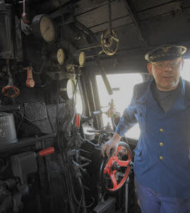 Martin Beelte fährt die große Dampflok. |