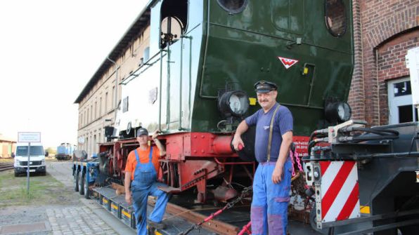 Um 8.30 Uhr setzte sich gestern der Tieflader mit der mehr als 30 Tonnen schweren Dame Richtung Berlin in Bewegung. Dort wird "Emma" bei der Messe "Innotrans", der weltweit größten ihrer Art für Eisenbahninfrastruktur und -fahrzeuge, erwartet. Wegen ihrer leichten und übersichtlichen Ausführung lässt sich "Emma" noch relativ leicht auch auf der Straße transportieren. "Das ist die günstigste Variante. Für die Schiene wäre sie zu langsam und würde quasi den ganzen Verkehr aufhalten", so Dirk Endisch vom Lokschuppen-Verein. Außerdem müsste ständig Wasser nachgefüllt werden, um die Lok fahrbereit zu halten. Bei der Messe soll das Gefährt zu Werbezwecken eingesetzt werden. "Dort wird sie einige Runden drehen", blickt Dirk Endisch voraus.