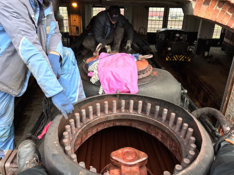 Afterwards, the pivots were cleaned and examined for cracks using ultrasound. They are located under the locomotive body and form the central connection to the bogies. Fortunately, both pivots turned out to be in perfect condition.